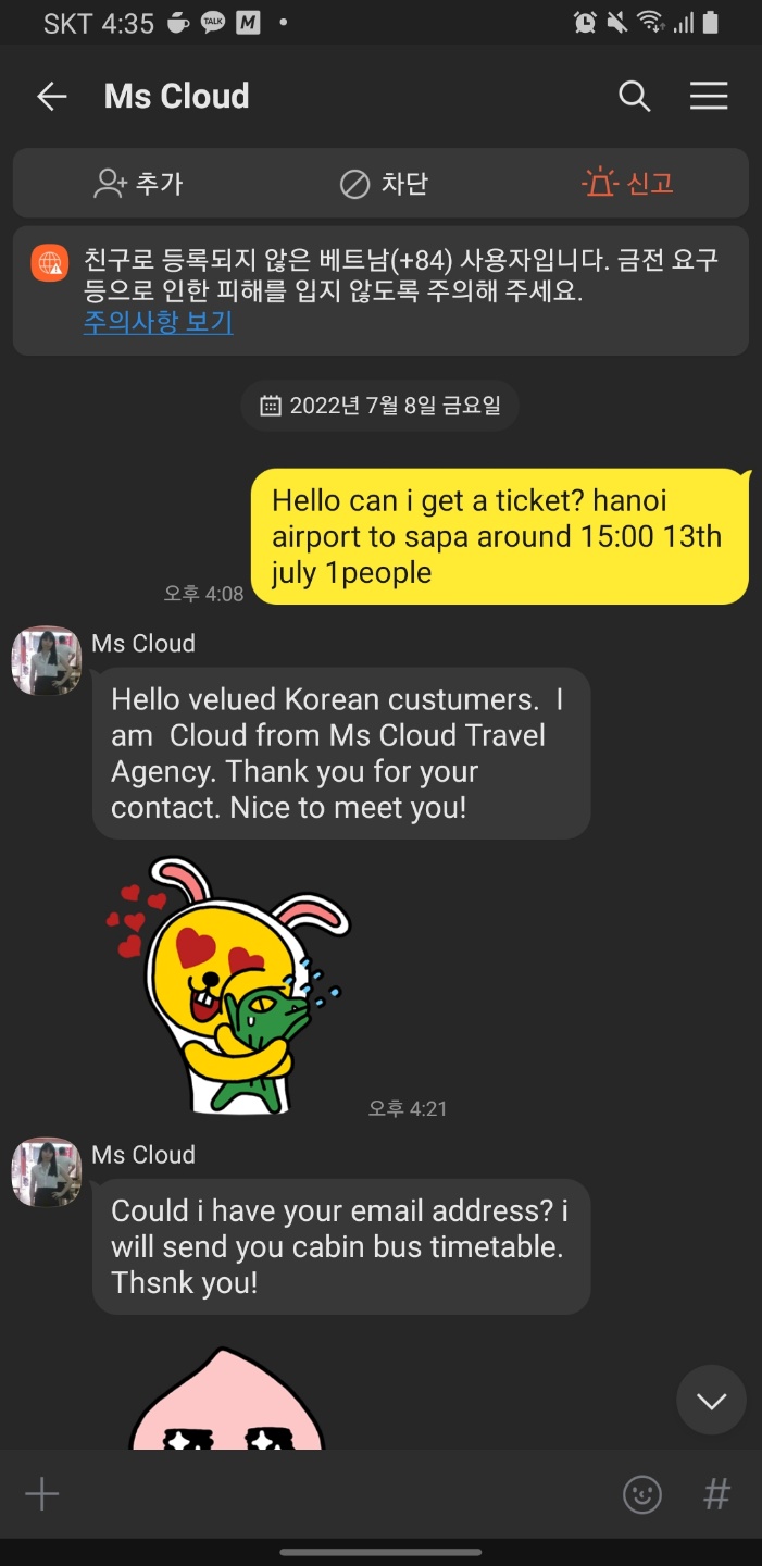 내 일정을 카톡으로 남긴다.(하노이공항 - 사파 기준)